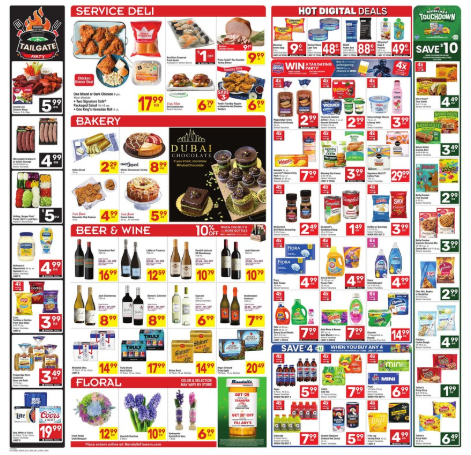 Each flyer has fresh food deals. Save on fruits, veggies, chicken, beef, and seafood. The bakery section often has discounts on bread, cakes, and pies.